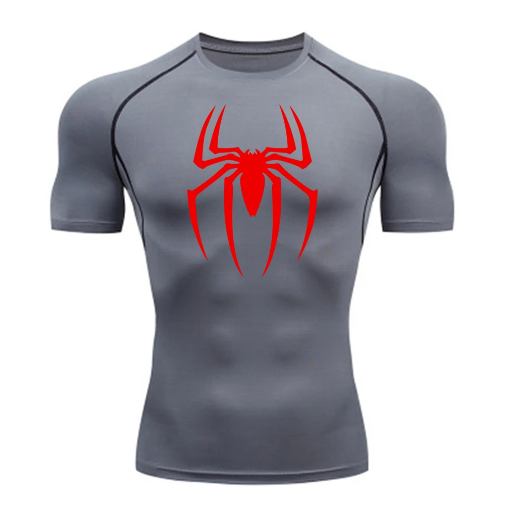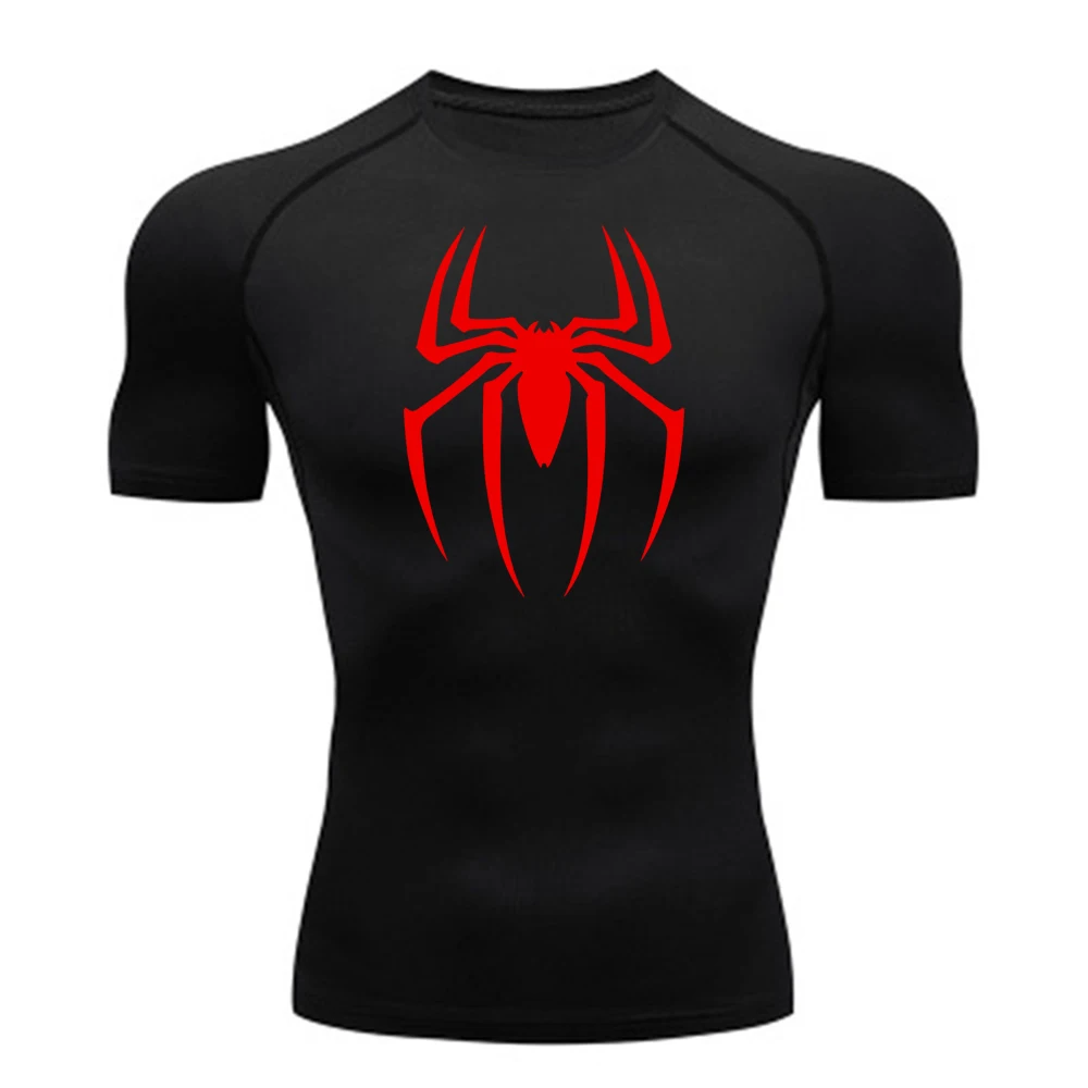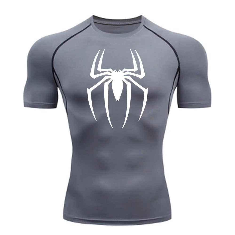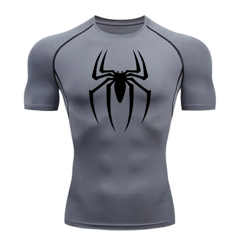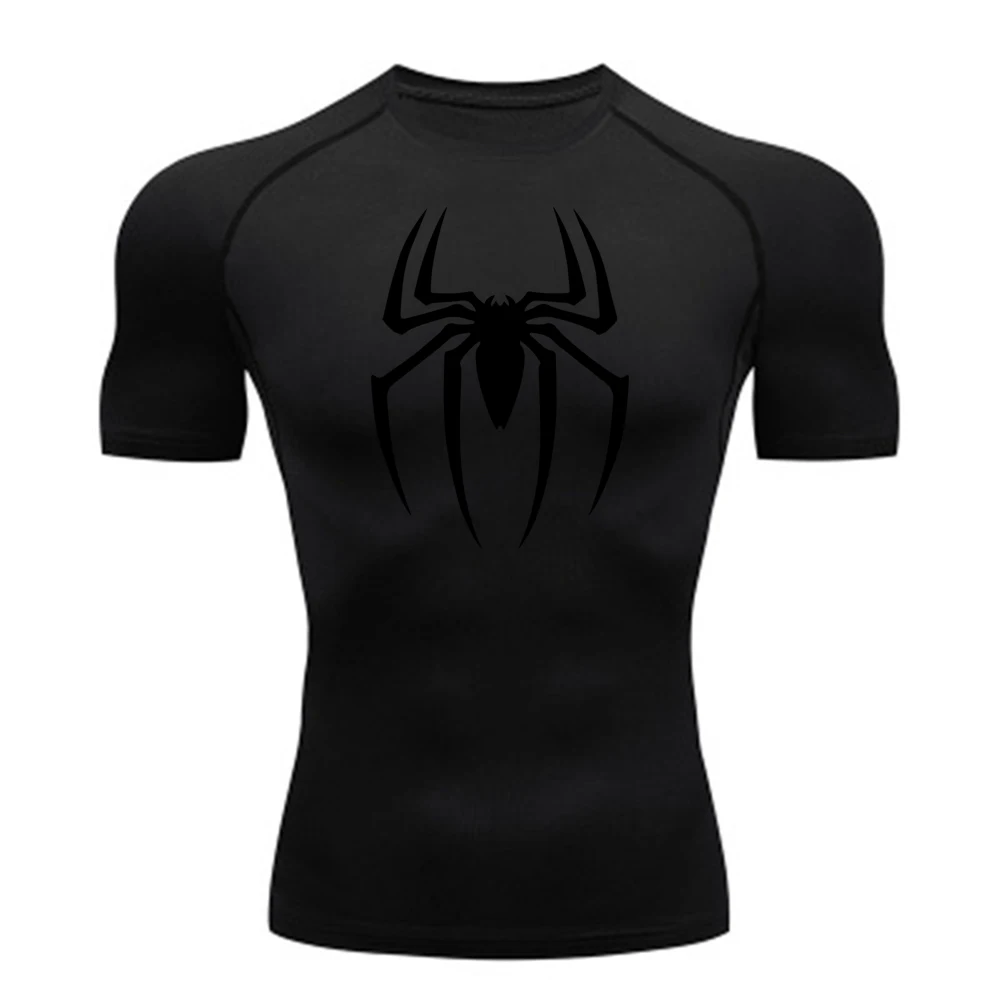 2025 Men's Spider Print Rash Guard, BJJ No Gi, MMA Fightwear Compression Shirt, Quick Dry T-Shirt, Gym Running Jersey, Breathable Short Sleeve, Spring, Summer, S-3XL
